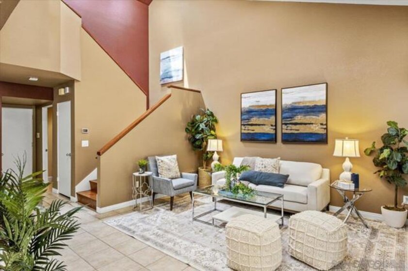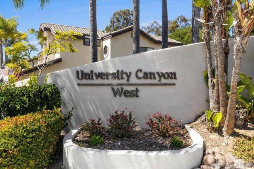 Seller willing to contribute toward buyer's interest rate buydown. This beautifully updated townhome offers the perfect blend of privacy, modern comfort, and architectural flair. Located in the highly sought-after University Canyon West community, this hidden gem is just minutes from USD, Fashion Valley, local beaches, and premier shopping and dining destinations. Step inside and be captivated by the home’s award-winning design, featuring vaulted ceilings and angled walls that create a sense of space and light. Skylights and updated dual-pane windows flood the home with sunshine. Enjoy the gas fireplace, plantation shutters and French doors opening to your own private patio and lush backyard, with no neighbors behind, just serene canyon views. The updated kitchen boasts abundant storage and rich wood flooring that flows throughout the home. There is a conveniently located powder room for guests as well as direct access to a 2 car garage with additional storage. The flexible dual-suite layout includes a spacious primary bedroom with a walk-in closet and a stylish en-suite bath featuring a walk-in shower. The second bedroom and full bath offer great space for guests or a home office. An upstairs laundry is conveniently located between the bedrooms for easy accessibility. Outdoor lovers will appreciate the resort-style, community pool and spa, along with direct access to miles of canyon trails for hiking, biking, and exploring. Enjoy the quiet established neighborhood with a true sense of privacy in a beautifully maintained community with a coastal-canyon vibe.