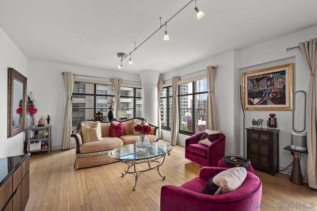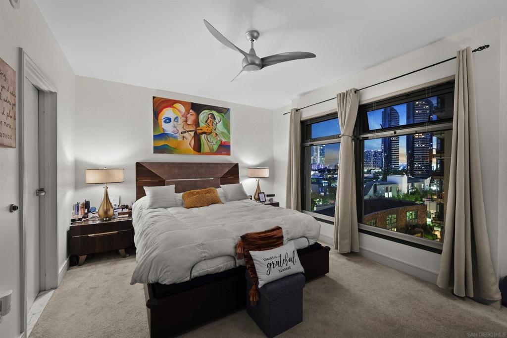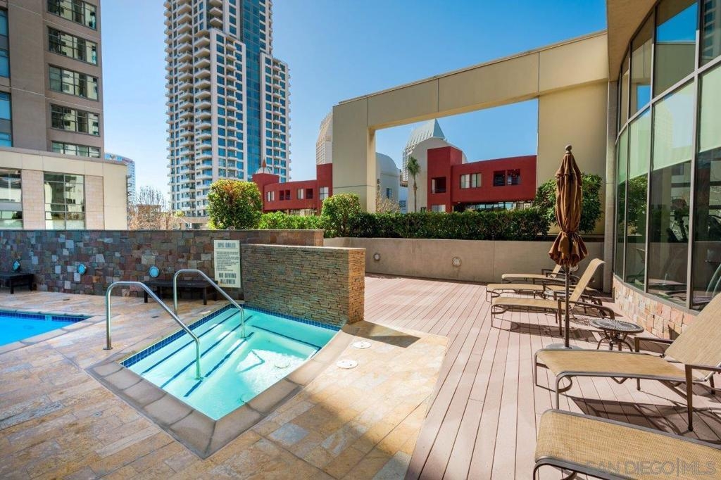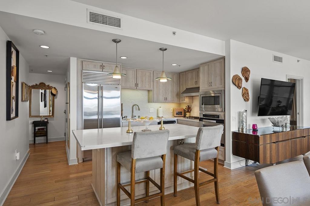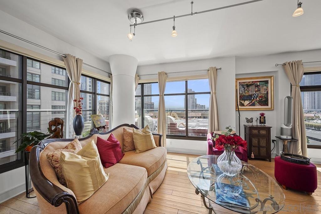 Claim your stake in vibrant urban living with this west-facing residence at Renaissance! Soak in sweeping bay and city views through expansive stacked, sliding windows in the living and dining area, bringing the outdoors in without the upkeep of a balcony. The open-concept kitchen has been thoughtfully upgraded with premium stainless appliances including Viking, GE, and Sub-Zero, complemented by quartz countertops, updated cabinetry, a generous center island, and stylish pendant, recessed, and track lighting. With a dual-suite layout, this home offers exceptional privacy and flexibility for guests, roommates, or a home office setup. The serene primary suite includes plush carpeting, a walk-in closet, and a spa-inspired bath with dual vanities. Additional features include beautiful wood flooring throughout the main living areas, storage unit, and tandem parking spaces. Live in the heart of the Marina District with world-class dining, shopping, and the waterfront just steps away Located on arguably one of the most convenient blocks in all of Downtown, just a few blocks to walk along the harbor, public transportation, excellent restaurants, shopping, Ralphs Signature grocery store next door, and the brand-new Rady’s Shell at Jacobs Park, a unique live music venue and home of the San Diego Symphony! Also enjoy proximity to the future life science and biotechnology research development The Research and Development District (The RaDD) at the Embarcadero and the sustainable tech-focused Campus at Horton in the center of the city. Delight in the casual elegance of Renaissance amidst the convenience of sophisticated urban living. Renaissance common areas have been recently refreshed and refurbished and include staffed lobbies, 24/7 security, pool & spa, barbecues, lounge areas, an outdoor fireplace, a well-equipped fitness center, and meeting rooms. Don’t miss your chance to call this special residence your own!