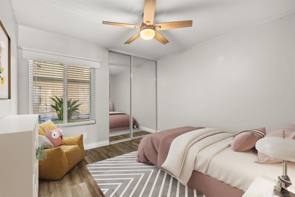 Complex is VA Approved! Step into a beautifully remodeled 2-bedroom, 1-bath condo that perfectly blends modern style with everyday comfort. Perched above the greens of Admiral baker Golf Club, this home offers panoramic golf course views from your living room and your private balcony—an ideal spot for morning coffee or evening relaxation. Inside, thoughtful upgrades elevate the living experience, including new flooring, custom kitchen cabinetry, elegant quartz countertops, and a sleek, spa-like bathroom featuring a Carrara-style tub and vanity. Located in the gated community of Valley meadows North, residents enjoy desirable amenities such as a spa, exercise room, and laundry facilities. Just minutes from SDSU, Mission Valley, shopping, restaurants, and San Diego’s iconic beaches, this property puts you right at the heart of it all.