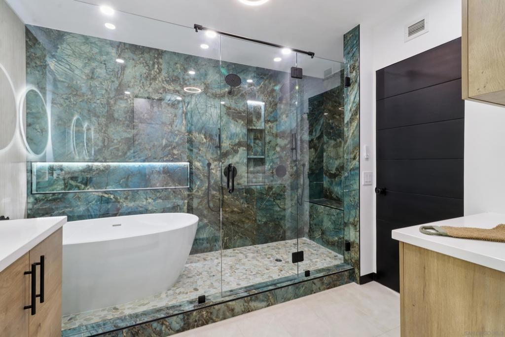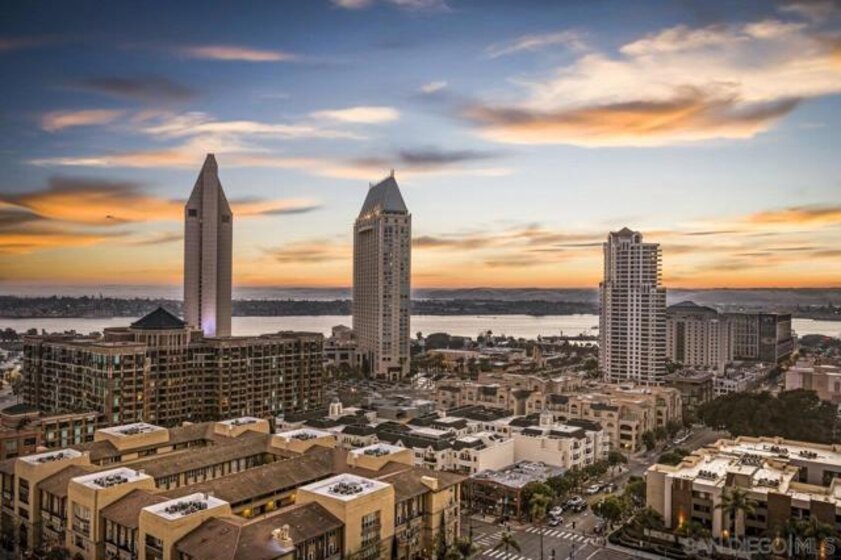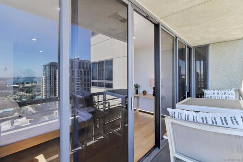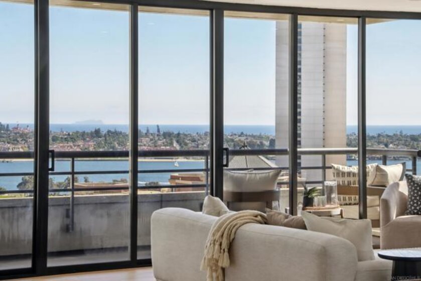 Happy New Year and welcome to a new price improvement at 700 Front Street in the highly sought-after 02 suites at The Meridian, perched on the 14th floor—a rare downtown San Diego residence offering ocean views, parking, doorman, and concierge services. Residents enjoy world-class amenities, white-glove service, and the prestige of living in one of downtown San Diego’s most iconic full-service luxury towers. This refined residence is thoughtfully designed to offer an exceptional living experience, highlighted by captivating 180-degree views spanning from the coast of Mexico to beyond Point Loma, visible from nearly every room. The beautifully remodeled home showcases sophisticated modern design throughout, featuring two primary suites and two balconies. The chef’s kitchen includes a waterfall island with built-in microwave drawer, hidden walk-in pantry and laundry, double-drawer dishwashers, stainless steel appliances, and quartz countertops with a full-height backsplash. Spa-inspired bathrooms feature a wet room with ocean views and privacy glass, illuminated vanities, and designer finishes. Additional highlights include a dry bar with wine refrigerator, custom fireplace, and mirror-accented dining wall ideal for entertaining. Engineered hardwood floors, recessed lighting, trimless LED baseboards, and built-in Bluetooth speakers enhance the contemporary ambiance. Smart-home features include a Nest thermostat, Bluetooth lighting, USB outlets, an updated electric panel, and recessed fire sprinklers—offering modern luxury living at its finest. Residents at The Meridian enjoy 5-star white-glove service, including valet parking, 24/7 concierge, doorman, on-site management, and exclusive amenities such as: 2 deeded parking spots, 52 guest parking space, the Plaza Level consists of the Fitness centers, Heated pool, spa, and sauna, 5 rentable guest suites and the Meridian Room that is available for catered entertainment. EV charging stations, Service elevator and personal storage. Specialty shops and restaurant on the first floor. Experience unmatched comfort, privacy, and sophistication in a building that rivals East Coast grandeur—with the laid-back luxury of San Diego coastal living. Excellent opportunity for buyers and investors seeking long-term capital appreciation in the San Diego market. According to WalletInvestor real estate market research, San Diego home values—including condos—are projected to continue upward over the long term by 2030, reflecting approximately 11.25% potential appreciation over a 5-year horizon. Strong fundamentals, desirable location, and favorable entry point make this a compelling investment or owner-occupied opportunity. Buyer to verify all information.