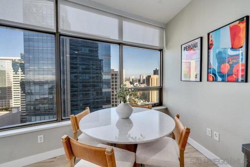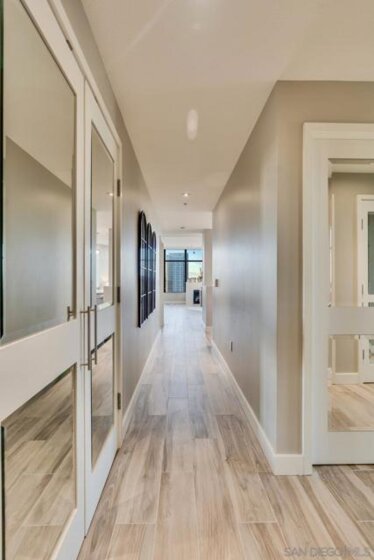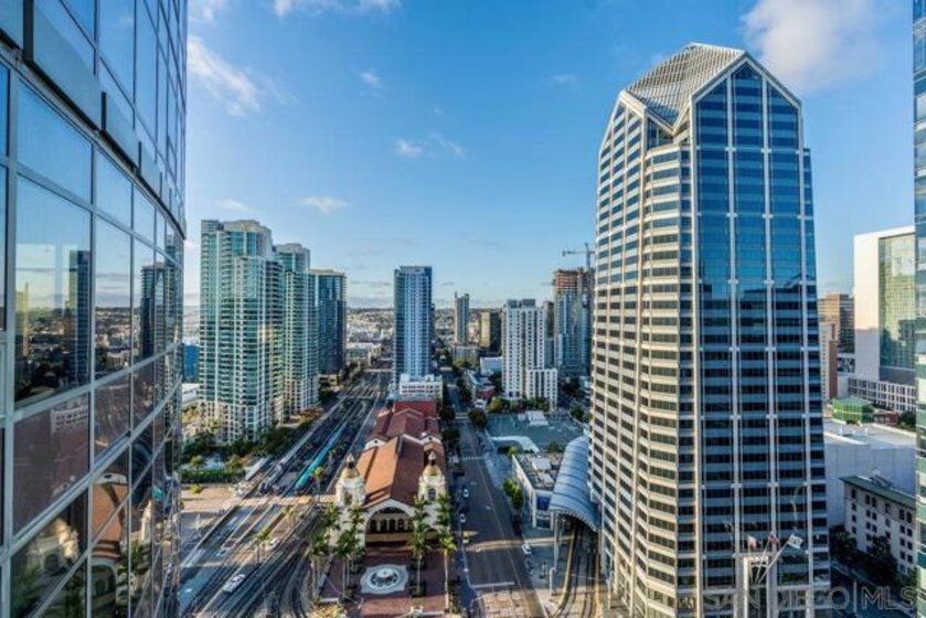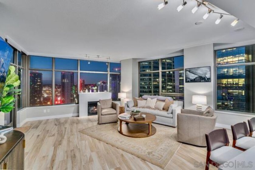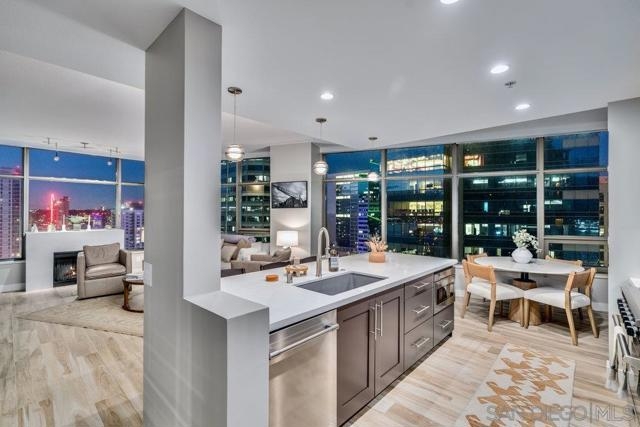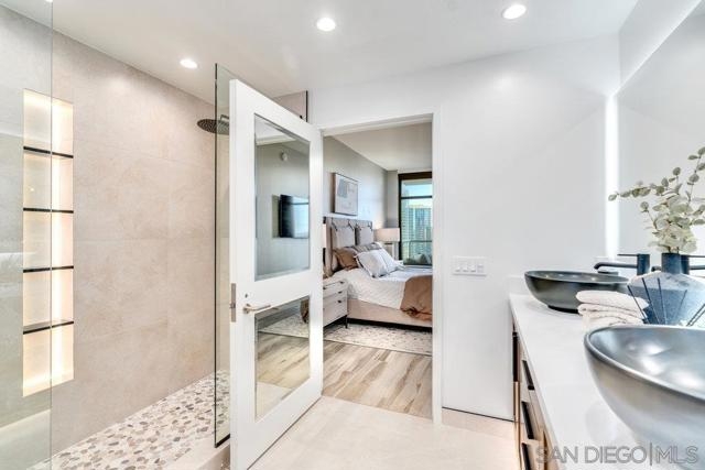 Highly sought-after 04-floorplan at The Electra — Skyline & Bay-front Luxury Condo Discover residence 2404 in the iconic Electra high-rise—an elevated urban retreat perched above downtown San Diego with panoramic downtown skyline and San Diego Bay views. Step into a bright, open-plan living and kitchen area wrapped in floor-to-ceiling glass offering uninterrupted vistas of the waterfront and city-lights. This premium condo features two private balconies, perfect for soaking in the dynamic downtown lifestyle. The gourmet kitchen boasts high-end stainless steel appliances, a Maytag dishwasher, and a sleek pull-out faucet—melding functionality with modern elegance. Everyday convenience is delivered with an in-unit washer and dryer complete with upgraded shut-off valves. The primary suite is a serene sanctuary with its own private balcony overlooking the ocean and bay. The newly re-imagined spa-inspired bathroom includes dual shower heads and handhelds, dual vanities, luminous back-lit mirror and bespoke modern finishes. A custom California Closet delivers resort-style organization and luxury. This residence includes two premium parking spaces and a private storage unit—adding practical luxury to your downtown high-rise lifestyle. Ideally located just steps from Little Italy, Electra 2404 embodies refined downtown living, luxury condo sophistication, and unbeatable waterfront views.