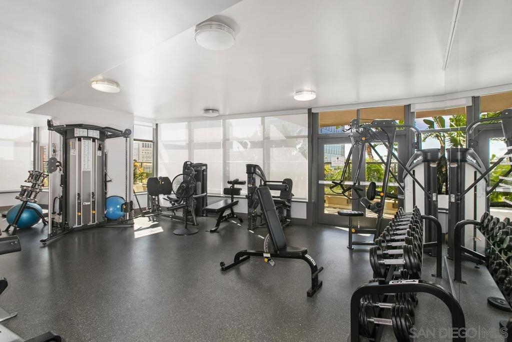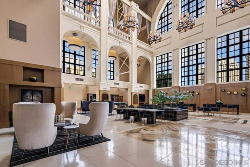 1-bedroom, 1-bath condo at Electra, one of downtown San Diego’s most iconic and historic high-rise residences. With 656 sq. ft. of living space, soaring ceilings, and an open floor plan, the unit feels bright, airy, and inviting from the moment you step inside. The kitchen features granite countertops, a breakfast bar perfect for seating, and a clear view into the spacious living and family room. Premium appliances include a large GE refrigerator, Bosch oven and dishwasher, and a 4-burner gas stove. The bathroom is finished with elegant travertine, while hard-surface flooring flows throughout the home. Additional highlights include a newer stacked washer and dryer, and the option to purchase the unit fully furnished for a turnkey move-in. Unit has 1 assigned parking space in parking garage. Electra offers a prime downtown location with easy access to Little Italy, the Harbor, Marina District, and the Gaslamp Quarter. Residents enjoy resort-style amenities including a luxurious social lounge, a stunning atrium with soaring 60-foot ceilings, pool, spa, fitness center, steam room, sauna, BBQ area, lush garden spaces, and 24-hour security. This is your chance to experience natural light, modern comfort, and timeless elegance in one of San Diego’s most sought-after towers.