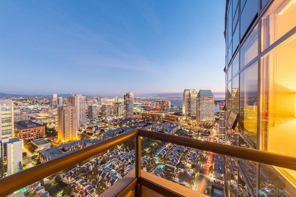 Stunning, unobstructed panoramic views stretch from the mountains across San Diego Bay to the Coronado Bridge! The home features Brazilian cherry hardwood floors, fresh interior paint, sleek murphy bed, granite countertops, custom tile backsplash, high-end stainless-steel appliances, Bosch washer/dryer, private storage unit & dedicated parking space upgraded with personal EV charging! Additional highlights include a NEST smart home system, custom closet organizers, an eat-at kitchen bar, and a dedicated storage unit in the underground garage. Electra offers full-service, resort-style amenities including a state-of-the-art fitness center with men’s and women’s locker rooms, pool and spa, steam room, Swedish sauna, concierge services, outdoor BBQ area, and an elegant community room, all within a secure, gated building. A desirable split floor plan provides excellent privacy, with a guest bedroom featuring its own private balcony with amazing views!