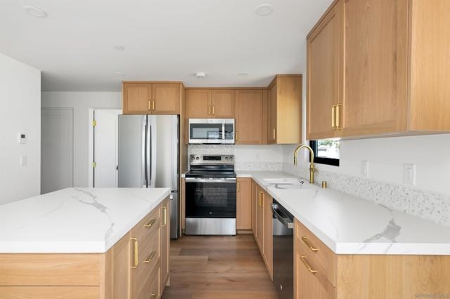 Introducing the Fantasket 3 Townhomes, a sleek and modern coastal Cape Cod–style new construction development featuring three luxury residences on the ocean side of Mission Beach. Built by a highly reputable local builder and backed by a full builder warranty, this 4-bedroom, 4-bath home spans three thoughtfully designed levels and offers the ultimate in low-maintenance, luxury beach living. The first floor features a versatile bedroom or ideal home office with direct front patio access, a full bath, laundry closet, and a direct-access tandem two-car garage. On the second floor, enjoy an open-concept living space with a balcony, a modern kitchen with stainless steel appliances, a dining area, and a bedroom and a full bath. The third floor showcases a primary suite with a spa-inspired bathroom and private balcony, along with another spacious ensuite bedroom that also enjoys its own balcony. A private rooftop deck crowns the home, offering 360° panoramic views of Mission Beach, the Pacific Ocean, and Mission Bay—ideal for entertaining or sunset relaxation. Additional highlights include Atlantis waterproof luxury vinyl plank flooring, designer finishes, wainscoting accents, central heating and A/C splits, and in-unit laundry. Just steps from the sand and walking distance to Belmont Park, Bonita Cove, Fit Athletic Club, The Plunge, and popular dining destinations, this townhome is perfectly suited for full-time coastal living, a vacation retreat, or a premium investment property. Don't miss out.