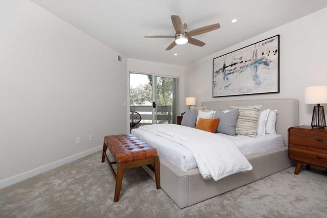 Elegantly remodeled unit (no stairs) features designer kitchen with quartz counters, stainless steel appliances and sleek cabinetry. Tasteful transformation also includes updated bathrooms, tankless water heater, recessed lighting, A/C and new washer dryer. Split bedrooms each enjoy private balcony with treetop vistas. Complex is complete with resort-like pool, spa and fitness center. Central location with proximity to shopping, USD, golf course, and restaurants offers a lifestyle of convenience.