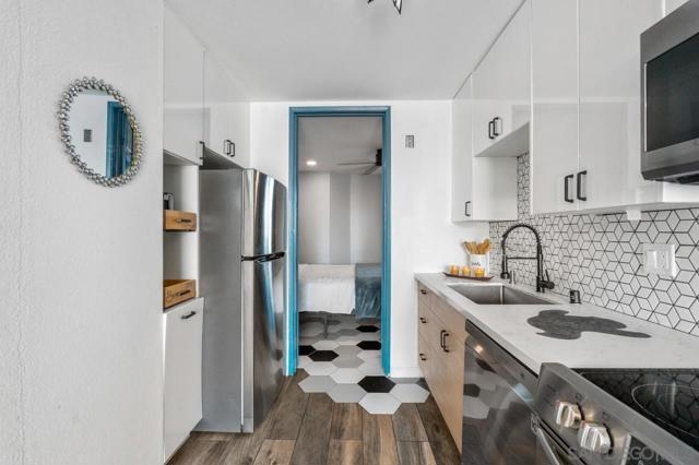 WILL NOT LAST! Your oasis at the beach awaits! This newly beautiful remodeled condo enjoy an oversized Balcony with open views! Perfect for investors/vacation rental or to fulfill their dream to own a second home on the sand! Steps to the Pacific Ocean and Mission Bay with miles of sugar sands! This secured building has been newly renovated and is next to fabulous cafes, restaurants, and shopping at your doorstep. Dedicated parking in the gated garage. NEW major building upgrades include fully paid balconies repairs, new roof/gutters, freshly painted, and new water heaters. HOA includes water, internet, cable, and convenient laundry facilities. 1 small pet permitted per unit and a maximum of 2 caged birds. San Diego’s beachfront lifestyle cannot be matched! Surfing, paddle boarding, boardwalk biking/walking, incredible sunsets, and Southern California’s top nightlife are all yours in this perfect locale!