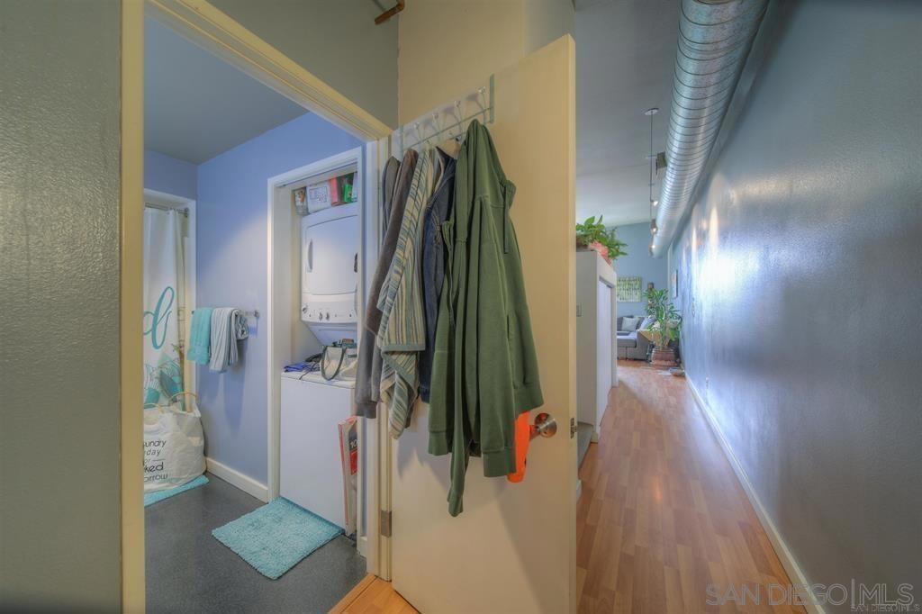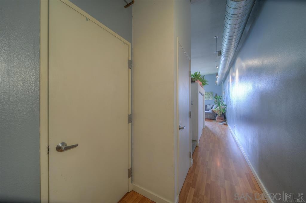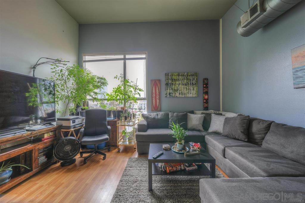 The Lofts @ 777 Sixth Avenue is the perfect location for Downtown living. Its located adjacent to numerous luxury shopping, restaurants, and nightlife venues. A short walk to Gas Lamp, the Waterfront, and Petco Park. This is a top floor unit that features high ceilings that provides an open air feeling. The open floor plan where the living room, dining area and kitchen flow seamlessly together maximizes the living space. The kitchen features plenty of cabinets and counter space for all your cooking and entertaining needs. It offers extra open shelf space with an eat-at center island. There is a private bedroom set apart as a partial loft and lots of creative storage areas. The in-unit stackable washer and dryer offers privacy and convenience. There are great views of the city lights from the living room and common areas. This is a secure gated community with a guard that is located in the heart of Downtown. Very low HOA fees compared to the market, but still provides a fully-equipped fitness center and beautiful common area. The location of this unit as well as the layout, condition, and charm make this unit highly desirable if you want to enjoy all that San Diego has to offer. Pictures are from a previous listing. Flooring has been changed and the kitchen cabinets need repaired on one side.