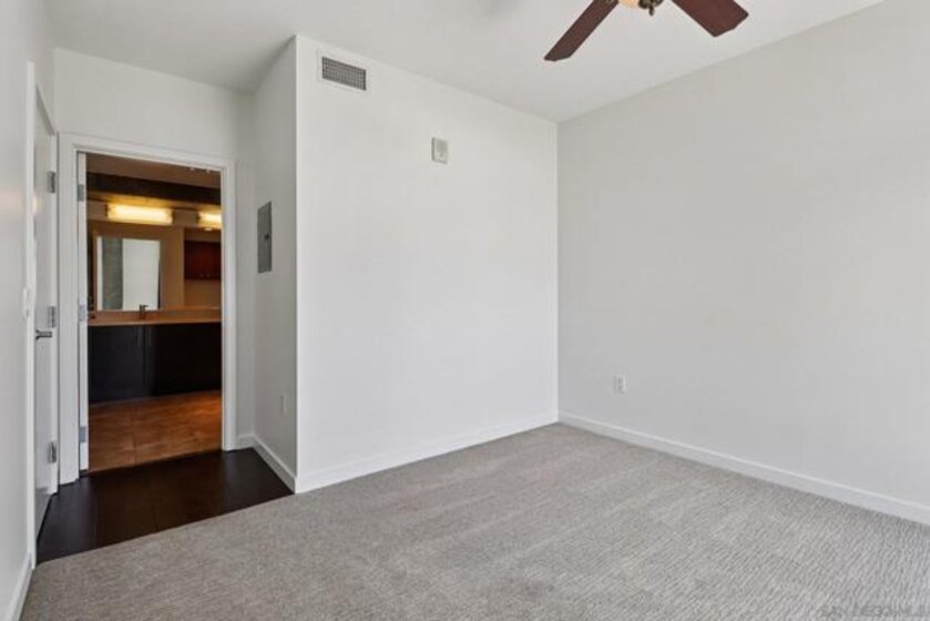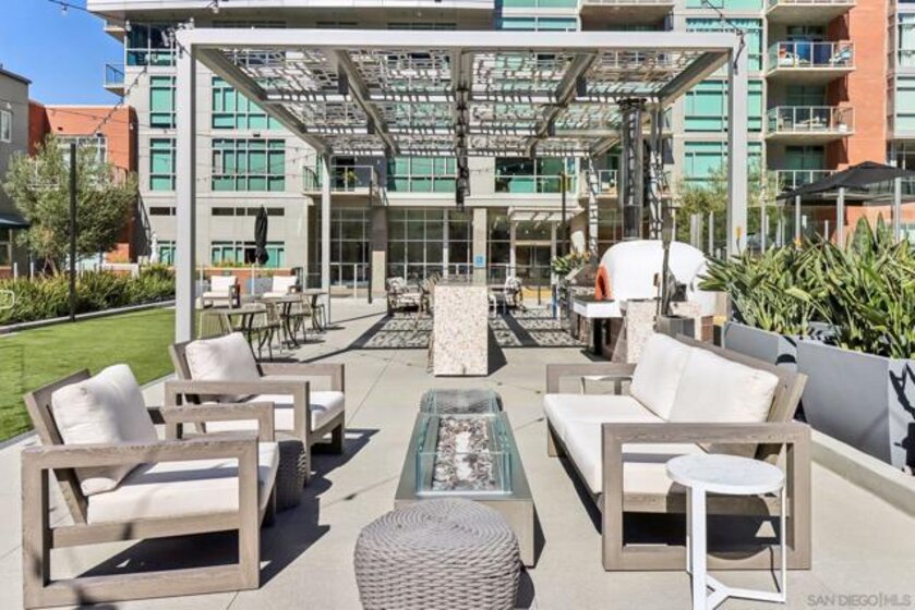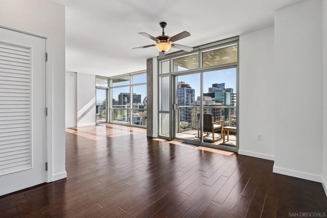 Experience luxury high-rise living in this spacious 16th-floor residence at The Mark, one of East Village’s sought-after communities. Perfectly located just steps from Petco Park yet positioned to avoid the noise and traffic, this home offers the ideal blend of excitement and serenity. The vibrant Gaslamp Quarter, scenic harbor, and charming Little Italy are all just minutes away, giving you endless options for dining, shopping, and entertainment. Inside, the open layout features a roomy living area with space for dining, home office or a den, plus access to a private balcony showcasing east, south, and westerly views—taking in the water, Coronado Bridge, Petco Park, and the sparkling city skyline. The kitchen is designed for both function and style, with stainless steel appliances, ample cabinet storage, generous counter space, and a convenient breakfast bar. The primary suite is a relaxing retreat where you can wake up to stunning views, step out onto your own private balcony, and unwind in a spacious bath with dual sinks. Additional highlights include an extra half bath, in-unit laundry, two side-by-side parking spaces, and a separate storage unit. The Mark offers unmatched amenities within its secure, gated community, including concierge service, 24-hour security, a newly updated saltwater pool and spa, BBQ and lounge areas, state-of-the-art fitness center, and conference room. VA approved, this residence combines modern comfort, breathtaking views, and resort-style living in the heart of Downtown San Diego.