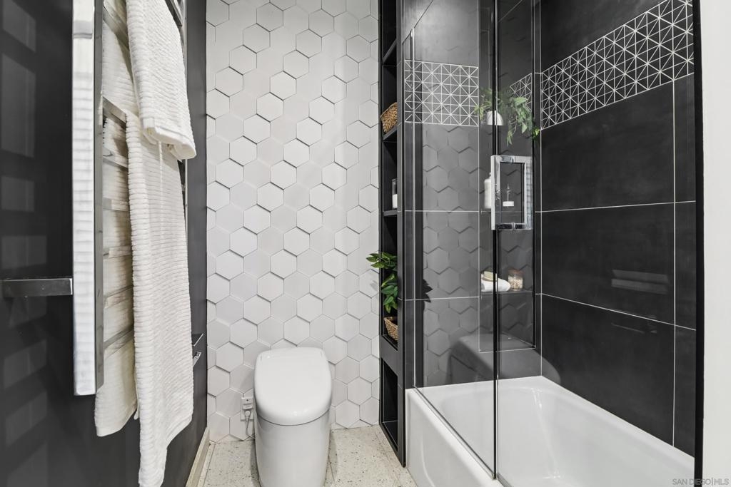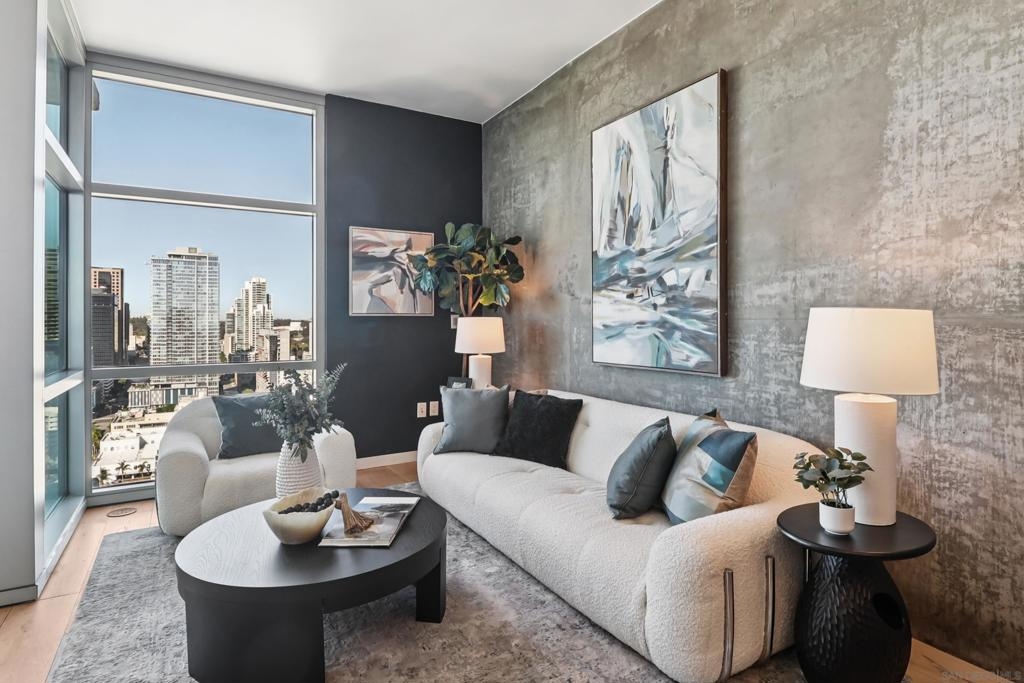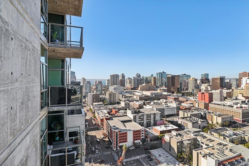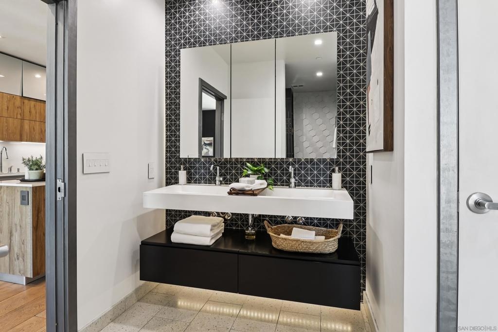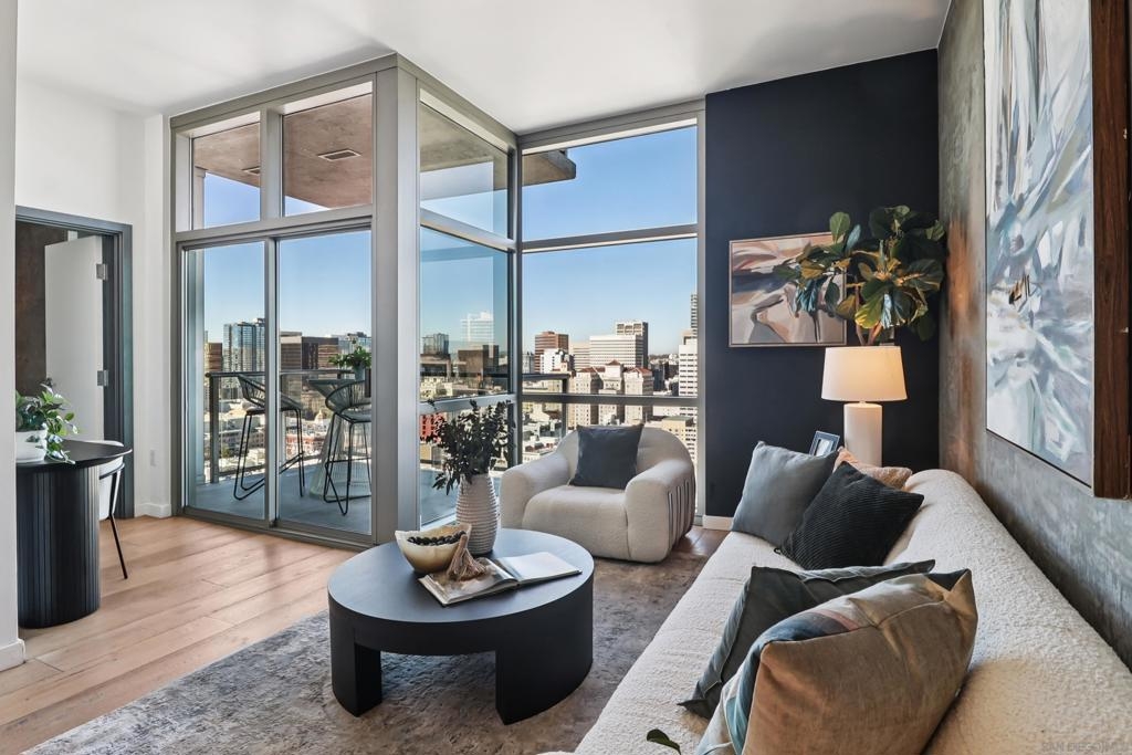 Rare and hard to find TWO CAR parking and STORAGE are included in this stunning fully remodelled home with bay and Balboa Park VIEWS. Fully remodeled gourmet kitchen - Sub-Zero and Miele appliances (induction cooktop, wine fridge, coffee maker). Ultra lux PEDINI cabinets. Gorgeous bathroom, hardwood floors, and more. Located on the 27th floor, highest floor for a one bedroom, will floor to ceiling windows allowing an abundance of light. Welcome to urban sophistication at the finest condo in the heart of downtown San Diego. This stunning contemporary residence in the East Village offers an unparalleled living experience with breathtaking city views from your private outdoor patio and expansive windows that flood the space with natural light. This modern one-bedroom on the 27th floor is the highest floor for a one-bedroom at The Mark. The gourmet kitchen is equipped with a Sub-Zero refrigerator and Miele appliances: a Miele coffee maker, a Miele steam oven, a Miele Induction cooktop, and a Miele Dishwasher. Included in the kitchen is a full-size Sub-Zero wine storage. An amazing exhaust plus lighting unit over the cooktop is a must-see. The kitchen cabinets are by PEDINI, the pinnacle of Italian kitchen design, with quartz countertops. There are oak wood floors throughout the living room and kitchen. Redesigned Porcelanosa bathroom with a real Terrazzo floor, Robern Medicine cabinets, and Elegant Brizo Litze bathroom fixtures, TOTO Neorest toilet, Amba towel warmer, and Electrolux washer/dyer. The bedroom includes a nice-sized walk-in closet. The unit includes two assigned parking spots and a nice-sized storage unit. Take a dip in The Mark's full-size pool, state-of-the-art gym, and outdoor cooking with pizza oven. 24-hour concierge service. Kitchen: Pedini custom cabinets from Italy Quartz countertoops Undermount lighting Sub Zero: Refrigerator/freezer Wine refrigerator holds 59 bottles Miele: Induction cooktop Dishwasher steam oven Coffee/espresso maker White Oak wood floors, wide and long planks Updated lighting Bathroom: Porelanosa sink, cabinets, and 3-dimensional tiles as accent wall Toto Toilette with built-in bidet 3 Robern medicine cabinets Terrazzo floor Unmount lighting on sink and cabinets Lighting around/behind medicine cabinets Towel warmer Brizo Litze Fixtures Electrolux washer and dryer Bedroom: Custom walk-in closet Oversized Storage Unit next to parking spots 2 Assigned/designated Parking spots Oversized Storage Unit next to parking spots