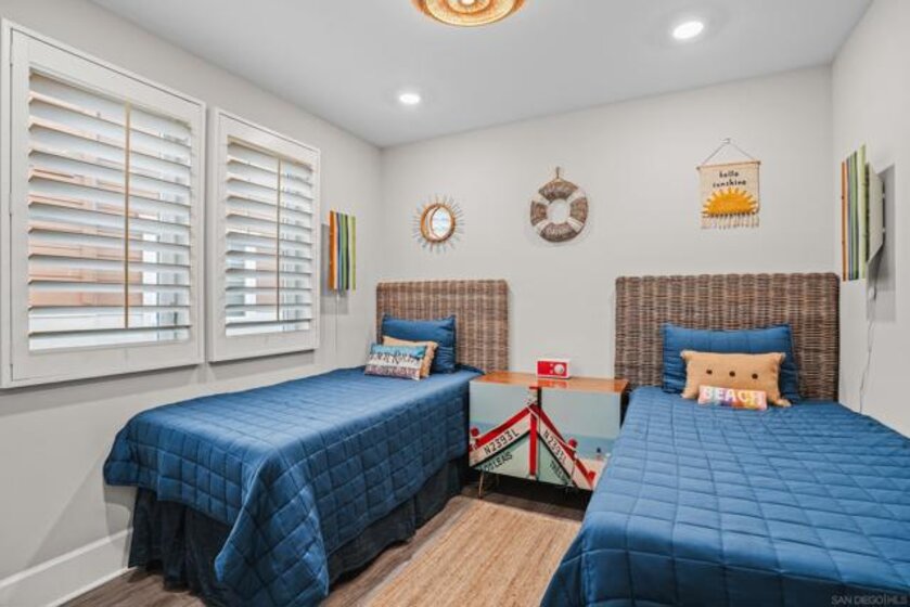 Modern Lock and Leave Mission Beach home built in 2020 and always owner-occupied. Features high-end finishes, open layout, and a rare 2-car garage. Guest room fits bunk bed for kids, and a long hallway offers master bedroom privacy great for hosting. HOA limited insurance, solar panels low utilities under $200/month. No rental restrictions with strong demand in the area. Opportunity for families or investors. Prime location near beach and bay! Night time security guard, brand new A/C.