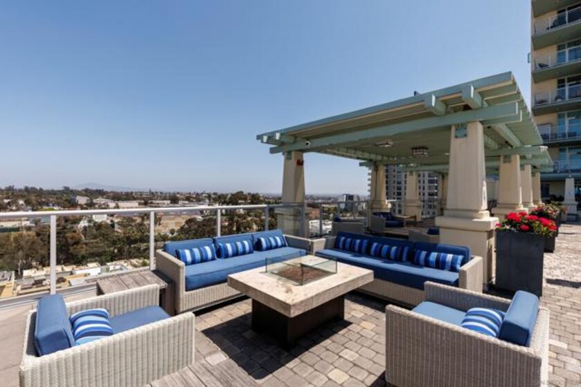Bright, Quiet, and Updated—Refined Downtown Living at Discovery Welcome to Unit 701 at Discovery in Cortez Hill, a beautifully refreshed corner residence offering natural light, interior-facing tranquility, and modern style. Situated on the quiet side of the building, this 2-bedroom, 2-bath home enjoys peaceful courtyard and soft city views through floor-to-ceiling windows and French doors that open to a private balcony. Recent upgrades include brand new luxury vinyl plank flooring, fresh designer paint, and newly painted cabinetry that gives the space a clean, contemporary feel. The open-concept living and dining area features a cozy fireplace and a built-in mini wine fridge, while the functional layout includes an in-unit washer/dryer, assigned parking, and a separate storage unit. The spacious primary suite includes a generous walk-in closet with custom built-ins, and both bedrooms are comfortably sized with great natural light. Discovery offers full-service amenities with a recently remodeled rooftop pool and spa, upgraded fitness center with new equipment, stylish lounges, firepits, and 24-hour concierge and security. Residents also benefit from a professionally managed, well-established HOA and a yearly renewable guest street parking permit from the City of San Diego. Located in the peaceful, tree-lined neighborhood of Cortez Hill—close to Little Italy, Balboa Park, and downtown hot spots—this move-in-ready home offers the best of urban living with a sense of calm. Welcome to Discovery at Cortez Hill, where modern comfort meets refined downtown living in this beautifully updated 2-bedroom, 2-bath corner residence. Located on the 7th floor, Unit 701 features brand new luxury vinyl plank flooring, fresh designer paint, and a light-filled layout that offers both style and functionality. Enjoy floor-to-ceiling windows, a private balcony with peaceful city and courtyard views, and a split-bedroom design ideal for privacy or remote work. The spacious primary suite includes a generous walk-in closet with custom built-in shelving, perfect for streamlined storage. Discovery is a full-service luxury building offering a recently renovated amenities floor, including a resort-style rooftop pool and spa, upgraded fitness center with new equipment, stylish lounge areas, and firepits for relaxed evening gatherings. With 24-hour concierge, security, and secure parking, every detail is designed for convenience and peace of mind. Located in the charming, tree-lined neighborhood of Cortez Hill, you’re just minutes to Little Italy, Balboa Park, and the vibrant energy of downtown. Move-in ready with modern upgrades—discover elevated urban living at Discovery.