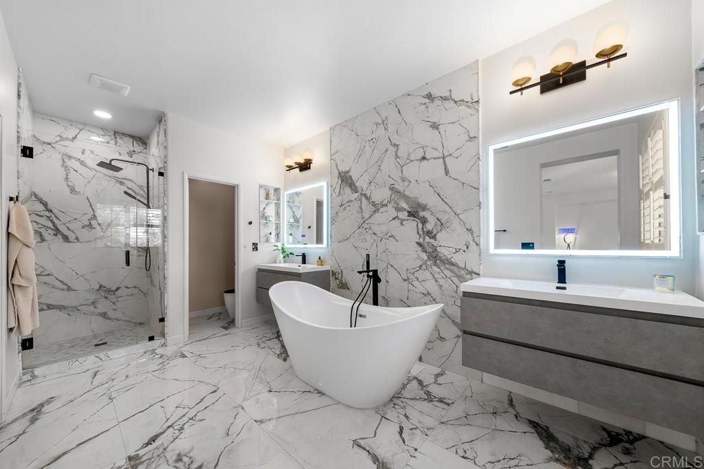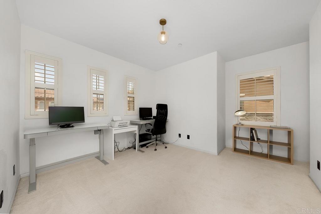 Located within the highly sought after community of Mandolin, this townhome is located in the heart of the master planned community of Del Sur! Step inside to discover an inviting open floorplan that seamlessly connects the living, dining, and kitchen areas, creating the perfect space for entertaining friends and family. The renovated kitchen is a chef's delight, featuring sleek countertops, stainless steel appliances, and ample storage, while the adjacent dining area offers a lovely spot for enjoying meals. The bathrooms have been given a total makeover, ensuring a fresh and stylish feel throughout. In its own private wing, the primary bedroom boasts a luxurious en-suite bathroom and a spacious walk-in closet, providing a comfortable and private retreat. The open layout and ample natural light create a warm and inviting atmosphere for daily living and entertaining. From enjoying a meal al fresco on the patio or balcony of your home, to hosting a larger gathering at the nearby park, the ideal location awaits you. Known for the highly acclaimed Poway School District, close proximity to shopping, parks, schools, and hiking trails, you will enjoy everything there is to offer.