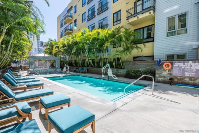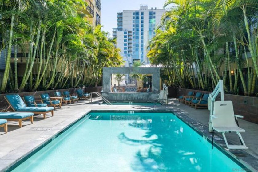 Welcome to this stylish junior one-bedroom residence at Aloft on Cortez Hill, offering modern finishes and unbeatable downtown convenience. This thoughtfully designed home features LVP flooring, granite countertops, stainless steel appliances, under-cabinet lighting, all appliances included, and a stackable washer and dryer for added convenience. Enjoy secure, pet-friendly living in this VA-approved condo with concierge services, secure parking, and resort-like amenities including an outdoor pool and hot tub, fully equipped fitness center, and private outdoor common areas designed for relaxation and entertaining. Ideally located in Cortez Hill, just minutes from Little Italy, Balboa Park, Gaslamp, and the waterfront, with easy access to major freeways and highways, making commuting a breeze. Urban living at its best: secure, trendy, and close to everything San Diego has to offer.