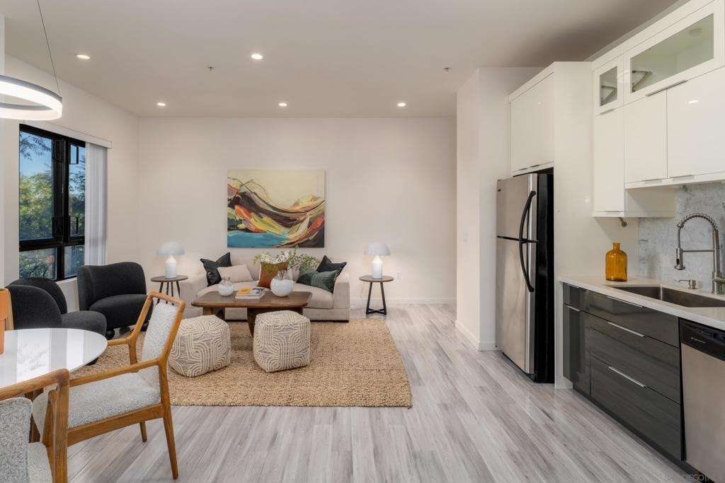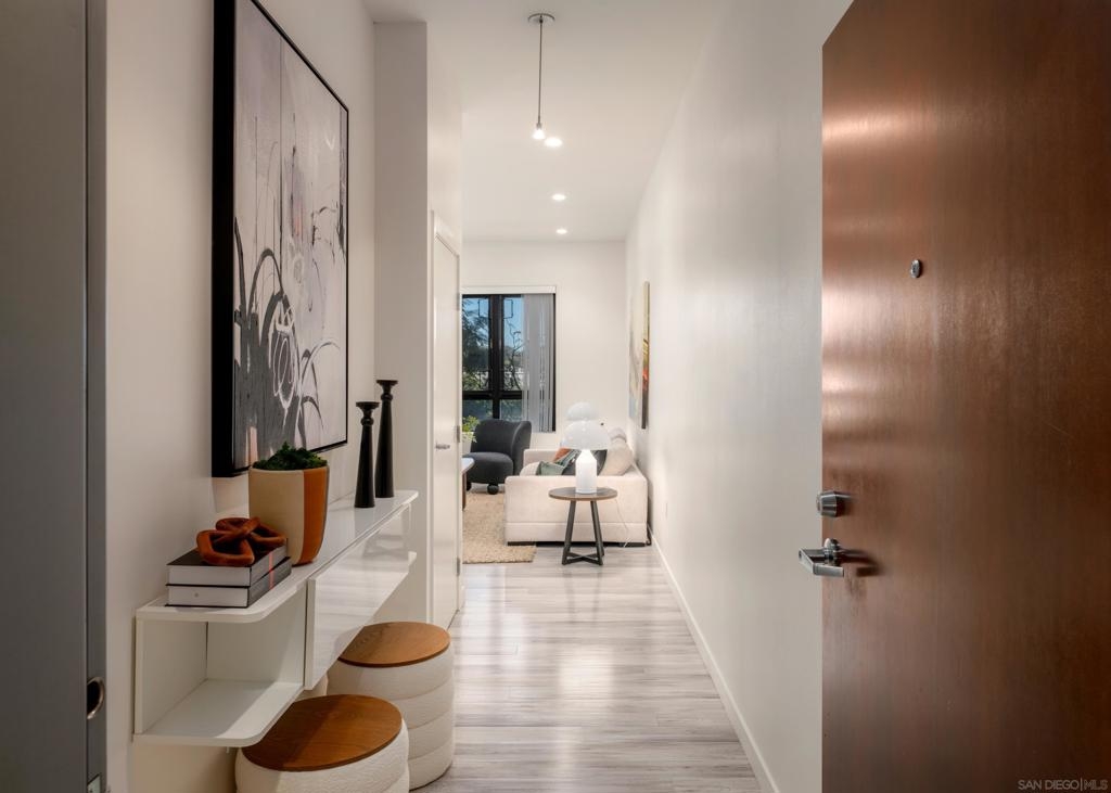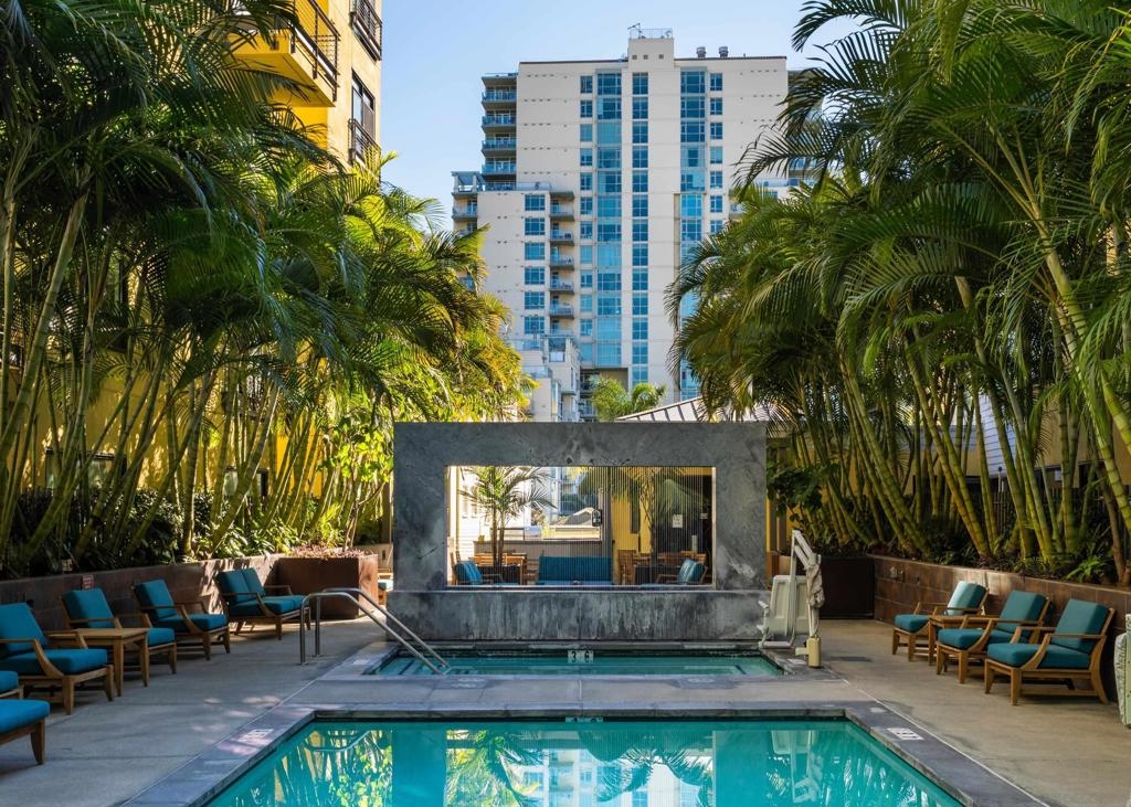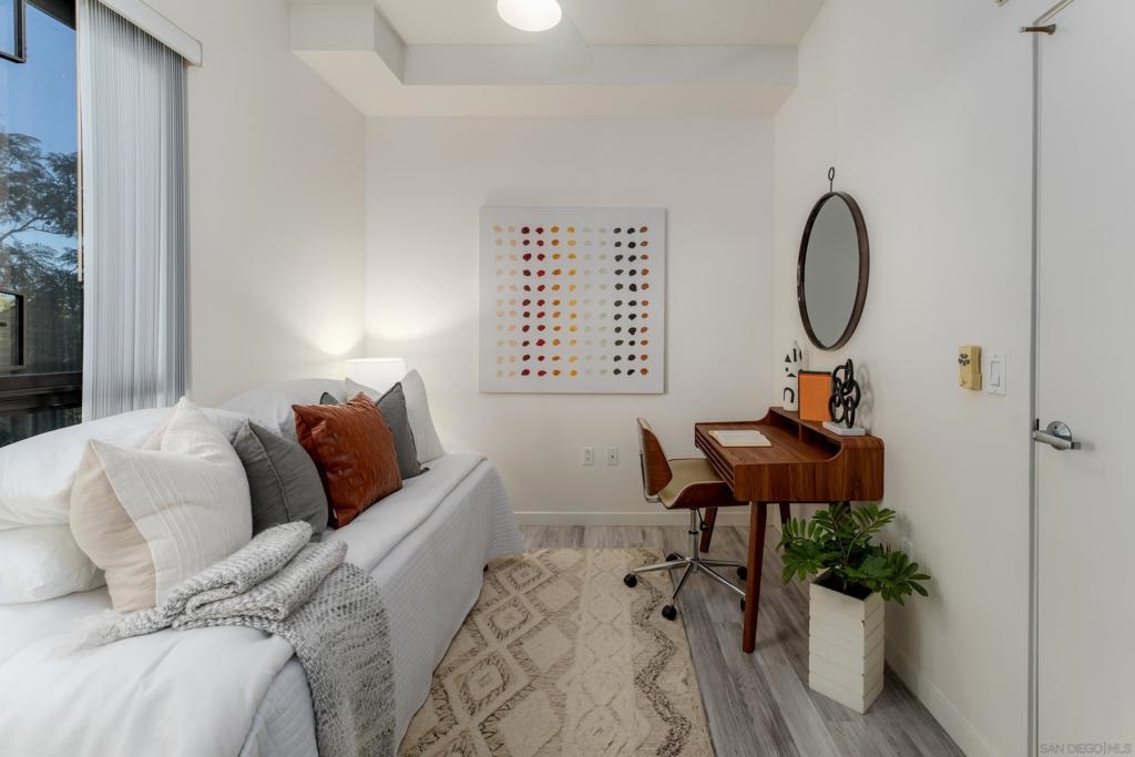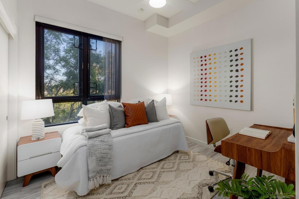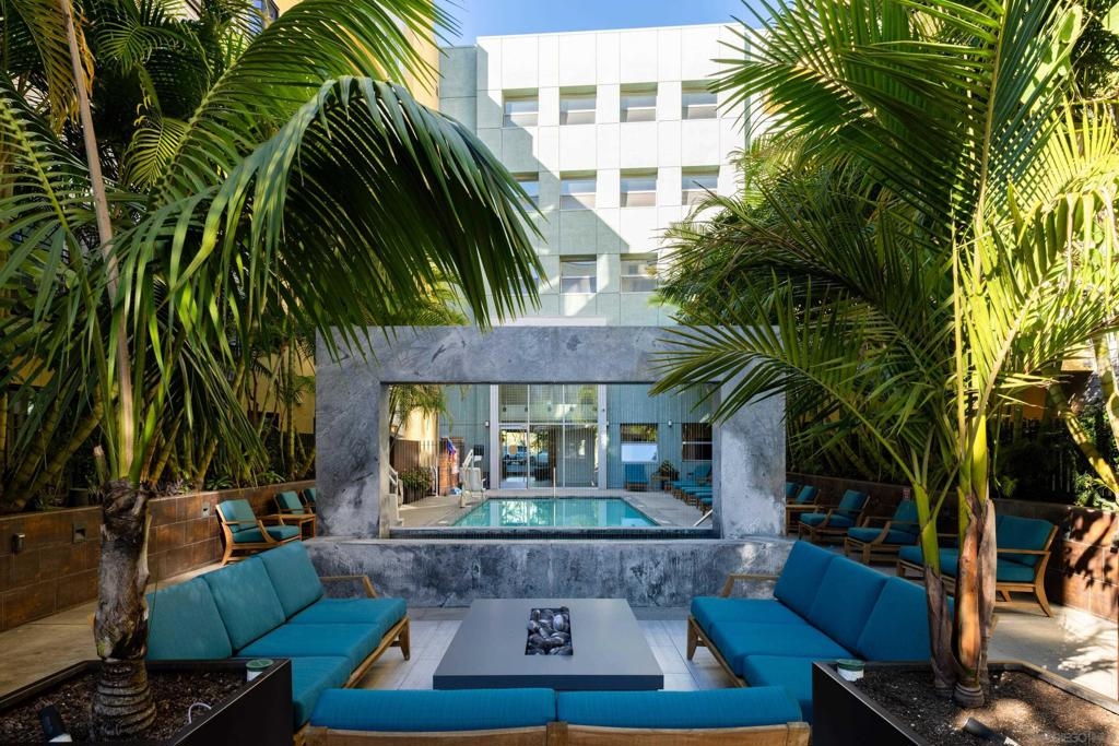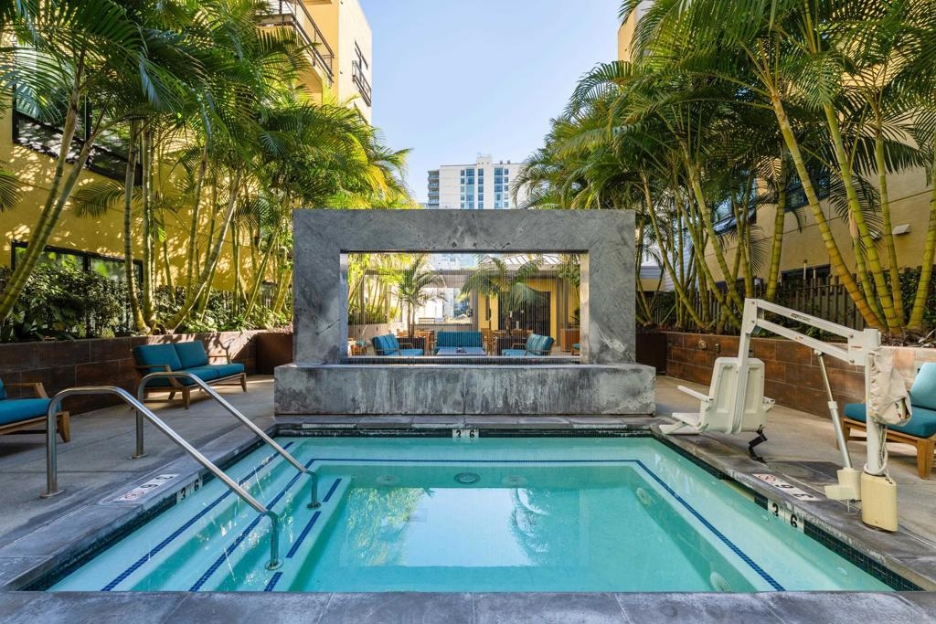 Located in the heart of Cortez Hill, one of downtown San Diego’s most desirable residential neighborhoods, this impeccably maintained 2-bed, 2-bath corner residence at Aloft offers a rare blend of tranquility, style, and walkable urban living. The corner-unit layout welcomes abundant natural light through expansive windows, enhanced by views of lush jacaranda trees that burst into vibrant purple blooms each spring. The thoughtfully designed interior features open-concept living, excellent storage, and a private patio perfect for morning coffee or relaxed evenings at home. Two generously sized bedrooms and dual bathrooms provide flexibility, privacy, and ease of living. The gated underground parking space includes a deeded lift that fits 2 full-size vehicles. Residents enjoy resort-style amenities including a pool and spa, fully equipped fitness center, and an expansive outdoor terrace with cabanas, lounge areas, BBQs, and a fire pit. The building also offers front desk management and security 7 days a week for your convenience. Across the street is pet-friendly Tweet Street Park, providing a charming neighborhood green space perfect for daily walks and outdoor enjoyment. Aloft is also just minutes from Balboa Park, Little Italy, the Gaslamp Quarter, Petco Park, and the waterfront, offering refined downtown living in a peaceful, beautiful neighborhood.