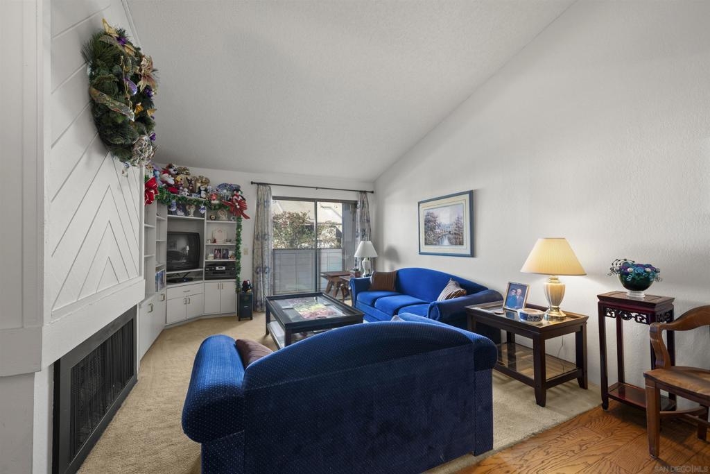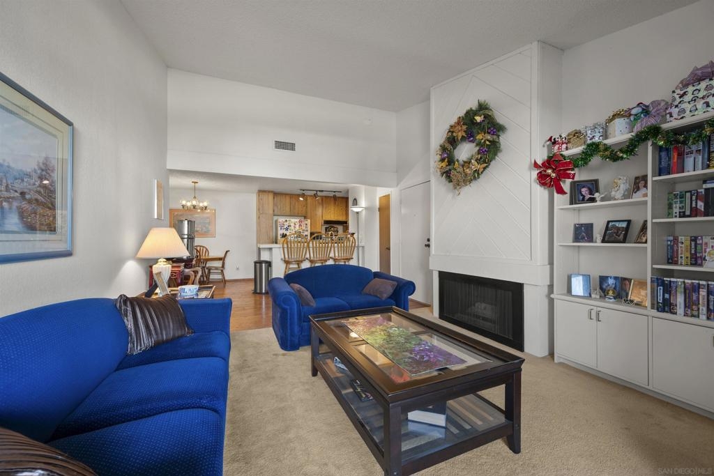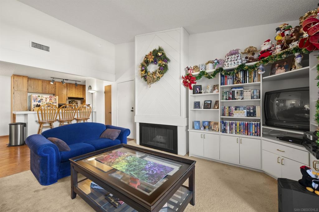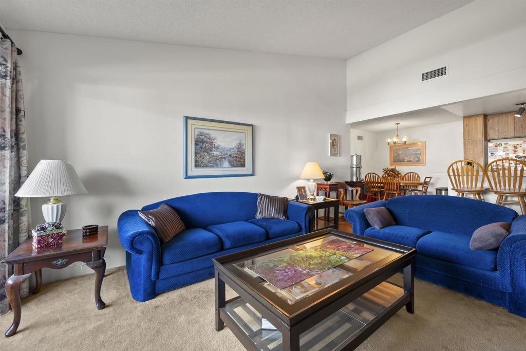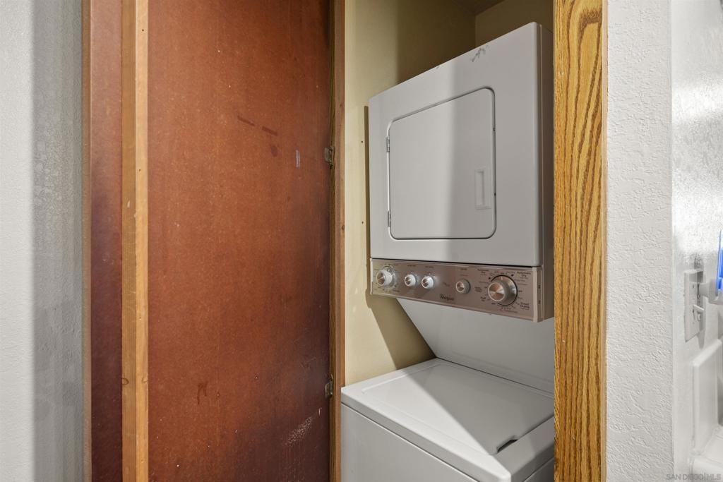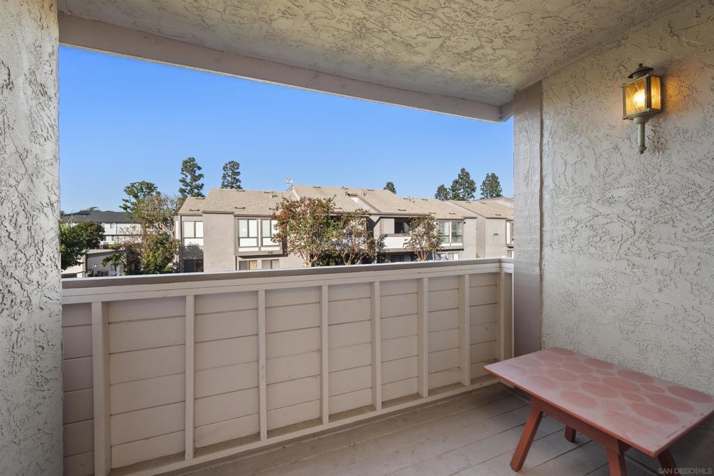 Start your commute going S.N.W or E.with this convenient location with each way about 5 minutes away! The unit is located on the second floor but is one story once you enter the unit. The open floorplan offers kitchen, dining and living room area that is open and spacious. The fireplace will add a cozy atmosphere on these cool winter nights and the newer forced air HVAC system will keep you cool on hot summer days. There are 2 bedrooms and 2 full baths plus stacked washer and dryer in the unit. There are 2 parking spaces assigned with one a covered carport and the other just a few steps from the unit! Close to public transportation, grocery and mall shopping with gormet dining or pub restaurants to choose from. Only 5 minutes from Snapdragon Stadium too!