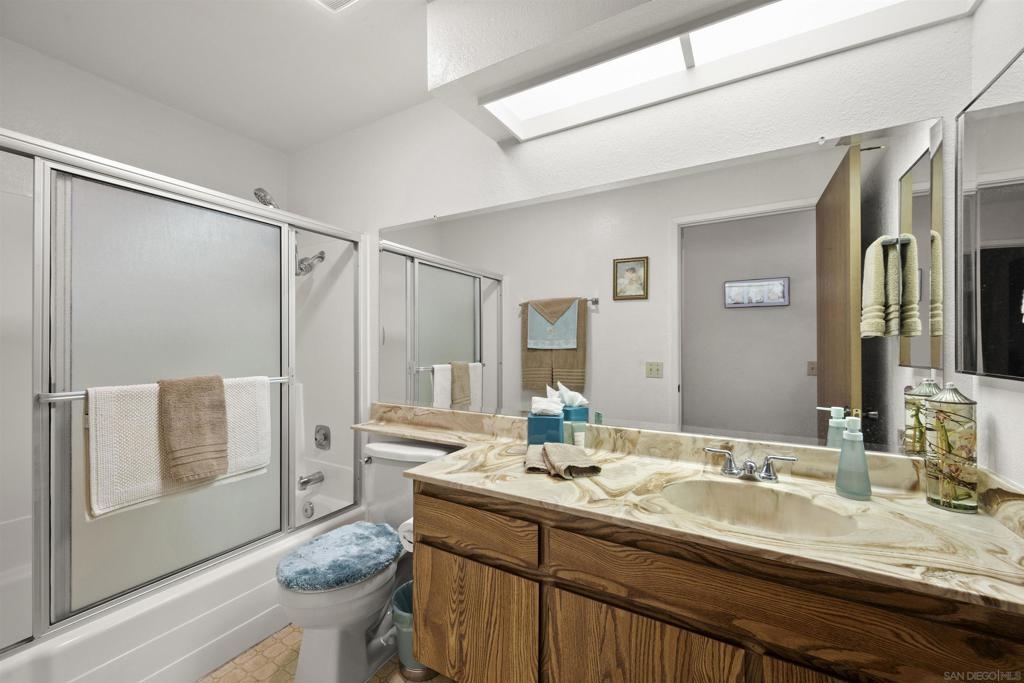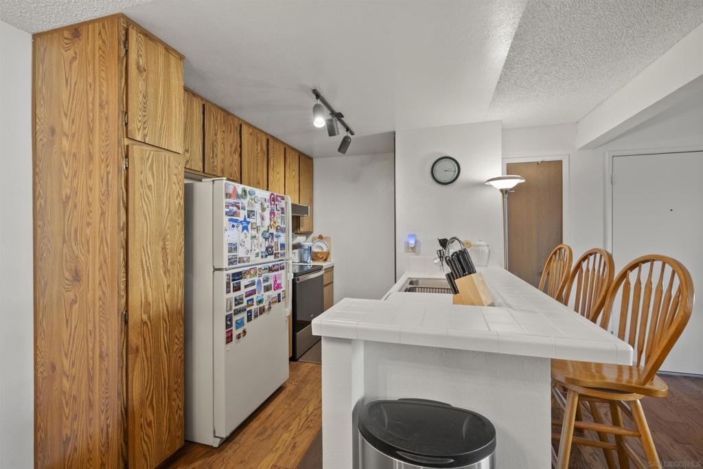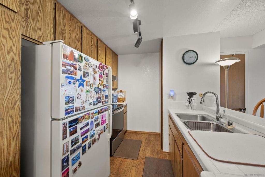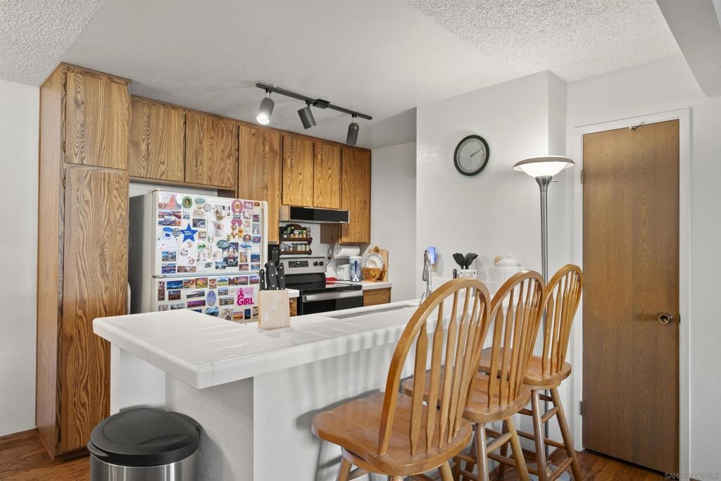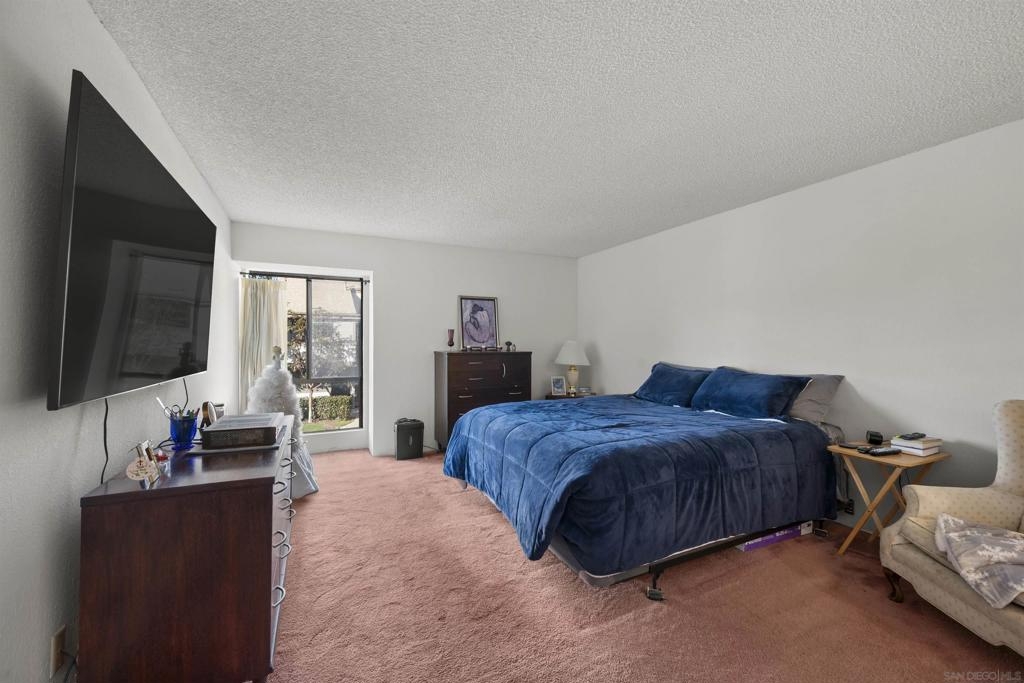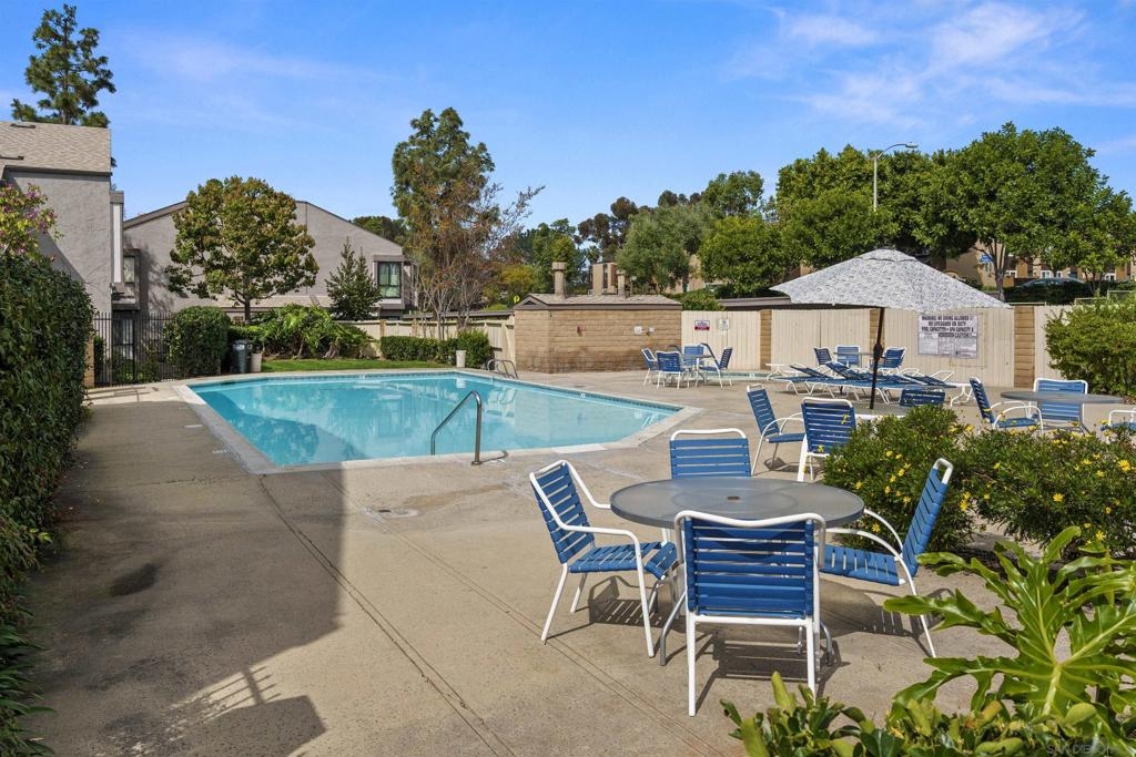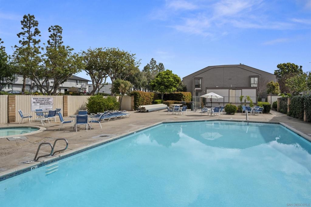 Start your commute going S.N.W or E.with this convenient location with each way about 5 minutes away! The unit is located on the second floor but is one story once you enter the unit. The open floorplan offers kitchen, dining and living room area that is open and spacious. The fireplace will add a cozy atmosphere on these cool winter nights and the newer forced air HVAC system will keep you cool on hot summer days. There are 2 bedrooms and 2 full baths plus stacked washer and dryer in the unit. There are 2 parking spaces assigned with one a covered carport and the other just a few steps from the unit! Close to public transportation, grocery and mall shopping with gormet dining or pub restaurants to choose from. Only 5 minutes from Snapdragon Stadium too!