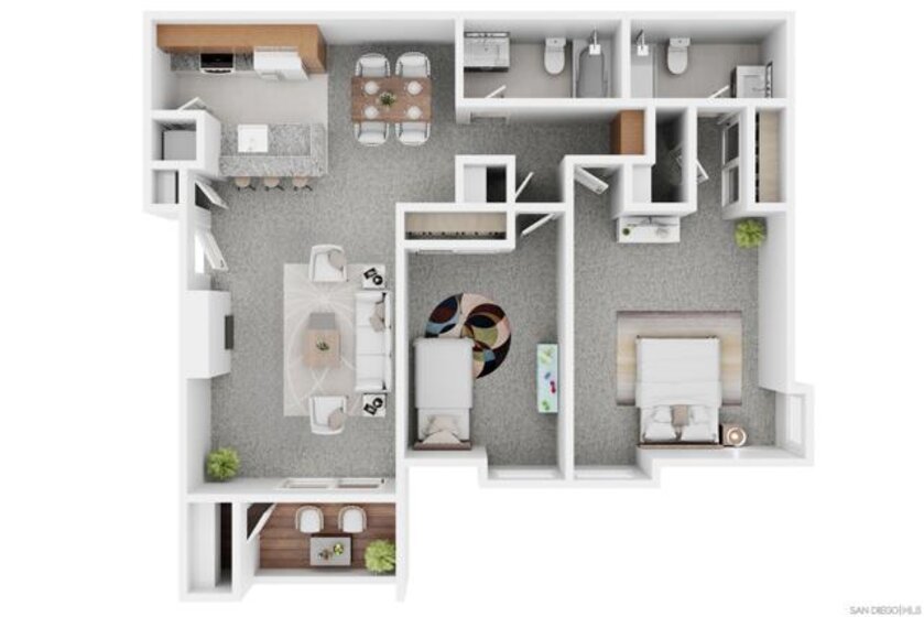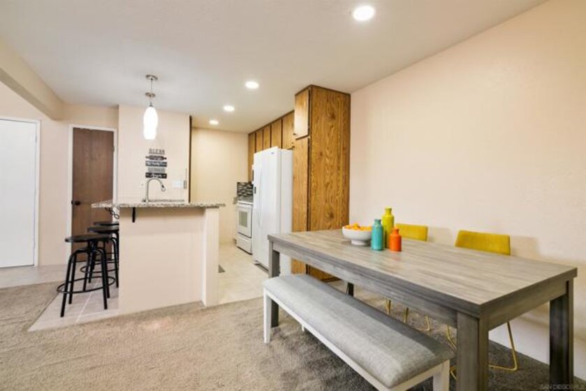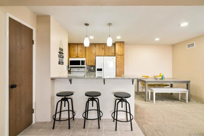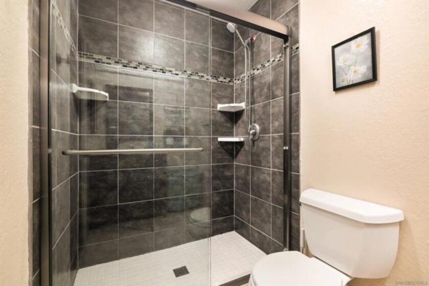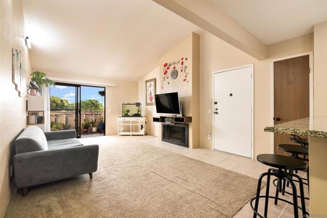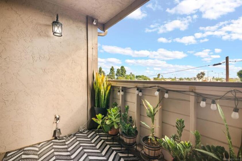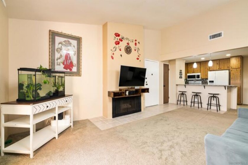 Located in the highly desirable Woodbridge Estates community in sought-after Serra Mesa. This 2-bed, 2-bath upstairs end unit features vaulted ceilings and a fireplace, along with indoor laundry and central air conditioning and private balcony with south facing views. Several upgrades include modern kitchen appliances, LED recessed lighting throughout, a new HVAC system, granite countertops, and remodeled bathrooms. This desired floor plan offers a separate dining area, outdoor storage closet, and both bedroom windows feature plantation shutters. The spacious primary bedroom includes 2 closets, including a walk-in closet. This unit comes with 2 dedicated parking spaces, including a covered carport. Woodbridge Estates is thoughtfully designed with beautifully landscaped grounds and offers several amenities, including two pools, spas, and a BBQ area. This exceptional home is conveniently located near Snapdragon Stadium, parks, schools, and shopping, with easy freeway access.