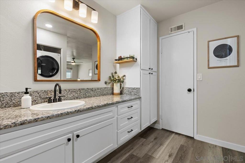 Bright and beautifully updated 2-bedroom, 1.5-bath condo in the desirable Shadow Tree community! This second-level home is tucked in a quiet corner near the pool and features luxury vinyl flooring, upgraded white shaker cabinetry, dual-pane windows, refreshed bathrooms, abundant natural light & AC. The spacious primary bedroom includes a walk-in closet and in-unit laundry. Complete with a single-car garage and driveway, it offers easy access to the 56/15 freeways and the top-rated Poway Unified School District.